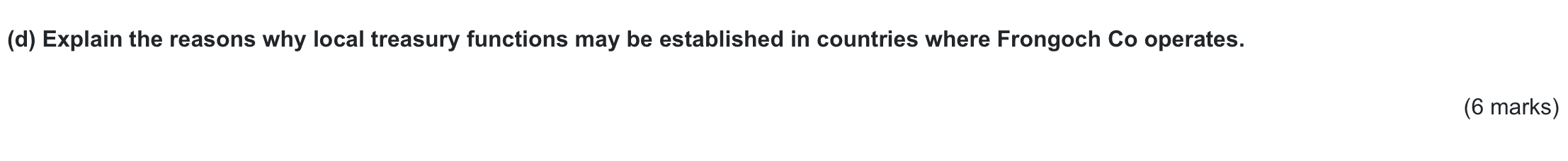 Local Treasury Function - Past Exam Question 4 / 7